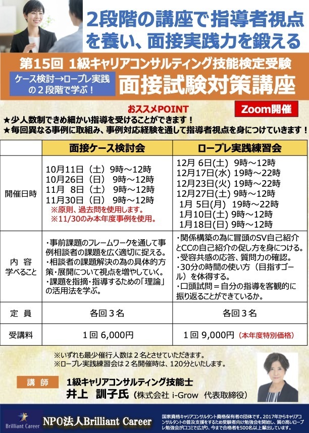 【第15回 1級キャリアコンサルティング技能検定受験対策《ロープレ実践練習会》】