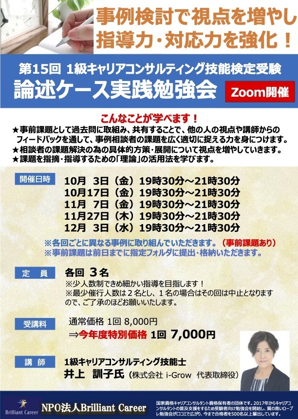 【第15回 1級キャリアコンサルティング技能検定 受験対策《面接ケース検討会》】